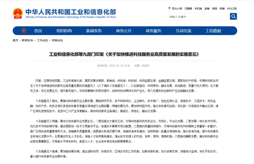 • 工信部等九部門聯(lián)合印發(fā)《關(guān)于加快推進科技服務(wù)業(yè)高質(zhì)...